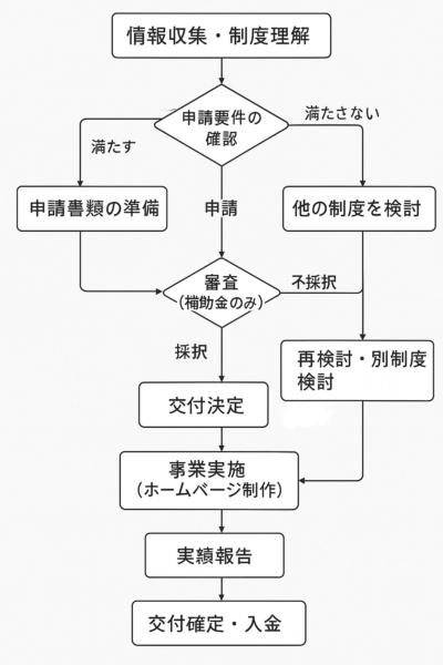 - 事業実施(ホームページ制作): 交付決定後、計画に沿ってホームページ制作を進めます。