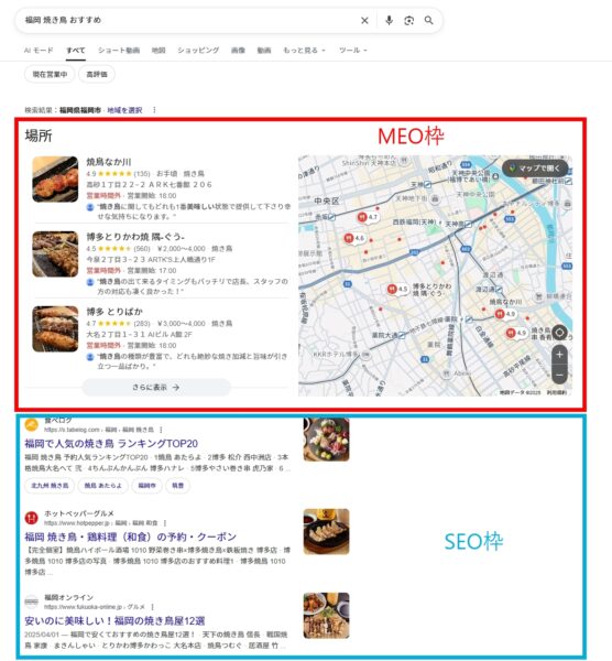 この中で、ユーザーが最もクリックする表示面はMEO枠とされています