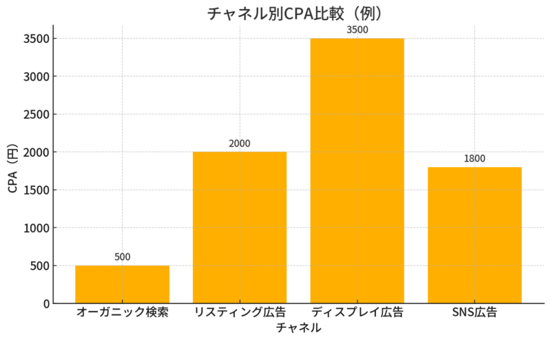 注: 上記のCPAはあくまで一般的な傾向を示すための架空の数値です。実際のCPAは業界、キーワード、広告運用の質など多くの要因によって大きく変動します。