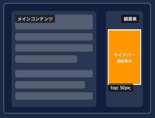 stickyは「親要素の範囲内で」「指定位置にきたら」固定される。 -